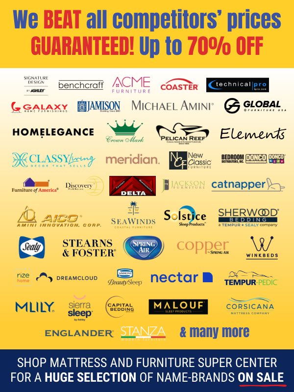 At Mattress & Furniture Super Center, you’ll find brand-new items, guaranteed low prices, easy financing approvals, and fast delivery or pickup options - all under one massive showroom roof.