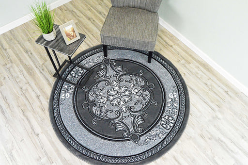 ( 8ft Round ) Glamour Hand Carved 206 Charcoal