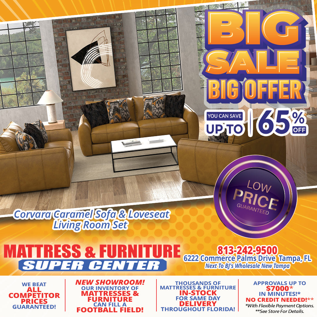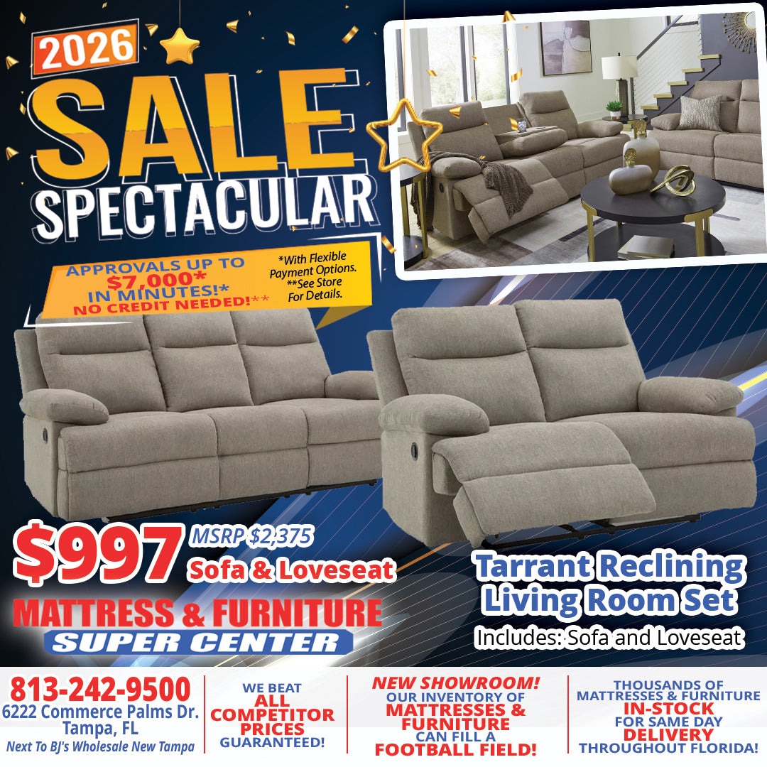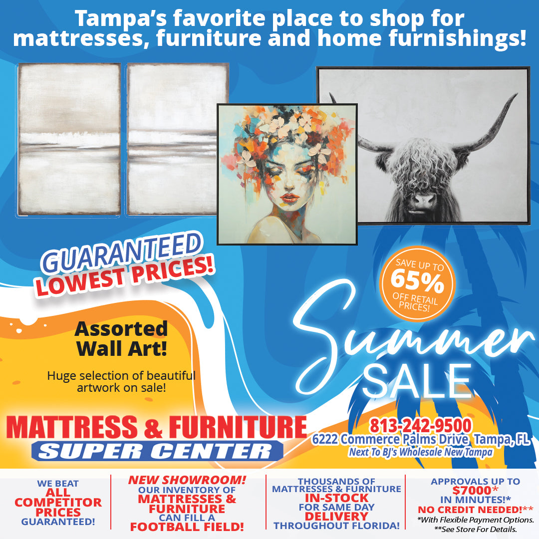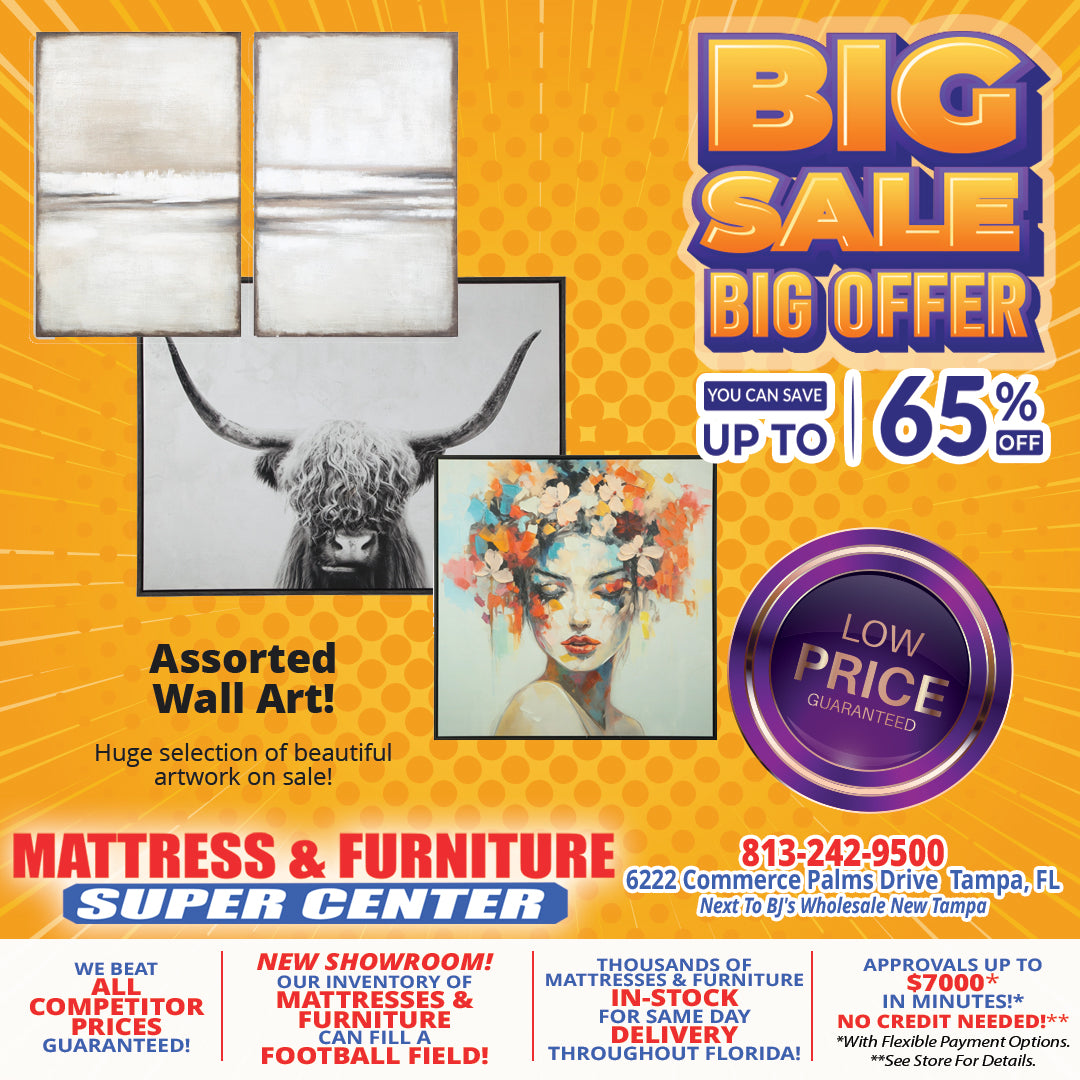 Living Rooms, Mattress Sets, Bedrooms, Dining Rooms, Kitchens, Outdoor/Patio, Artwork and Home Decor.